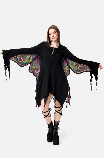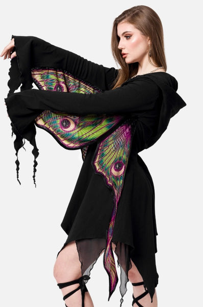 • 3D double-sided moth wings that span out like real wings when arms are raised