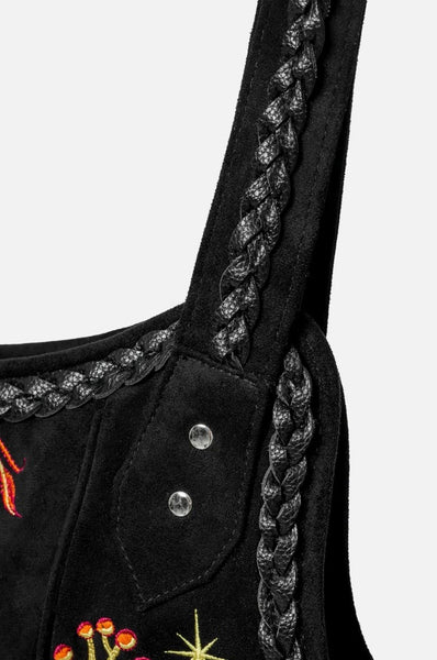 • Fringe trim to each side + 3 decorative tassels on front and gussets